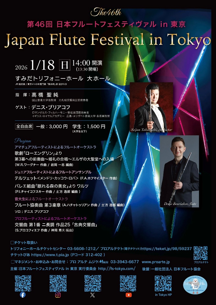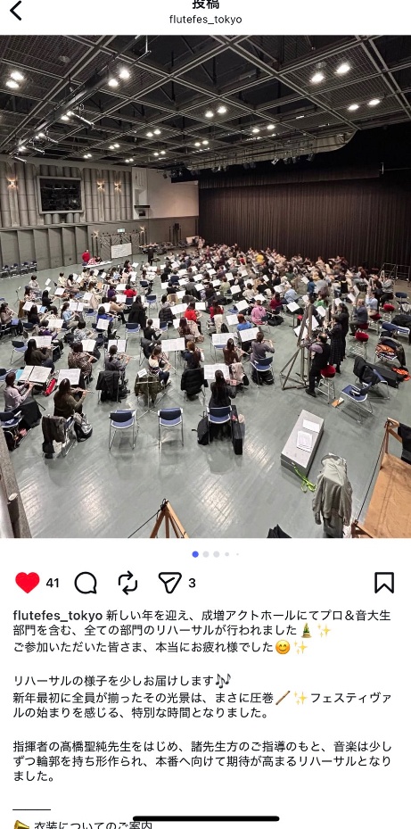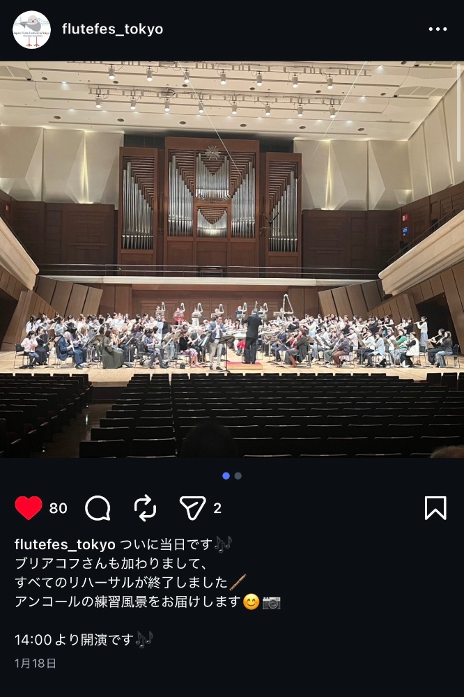 2026.1.18(日)14:00開演 フルートフェスティバル in 東京@すみだトリフォニーホールプロフルーティストによるオーケストラへ参加させていただきました🪈ブリアコフ氏の演奏をバックに演奏できる貴重な機会に感謝です!とても幸せで刺激になりました👏聴きにきてくださった生徒さんありがとうございます✨